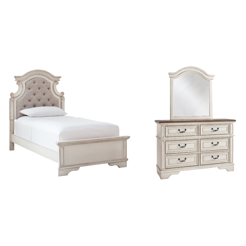 Realyn Twin Panel Bed with Mirrored Dresser
