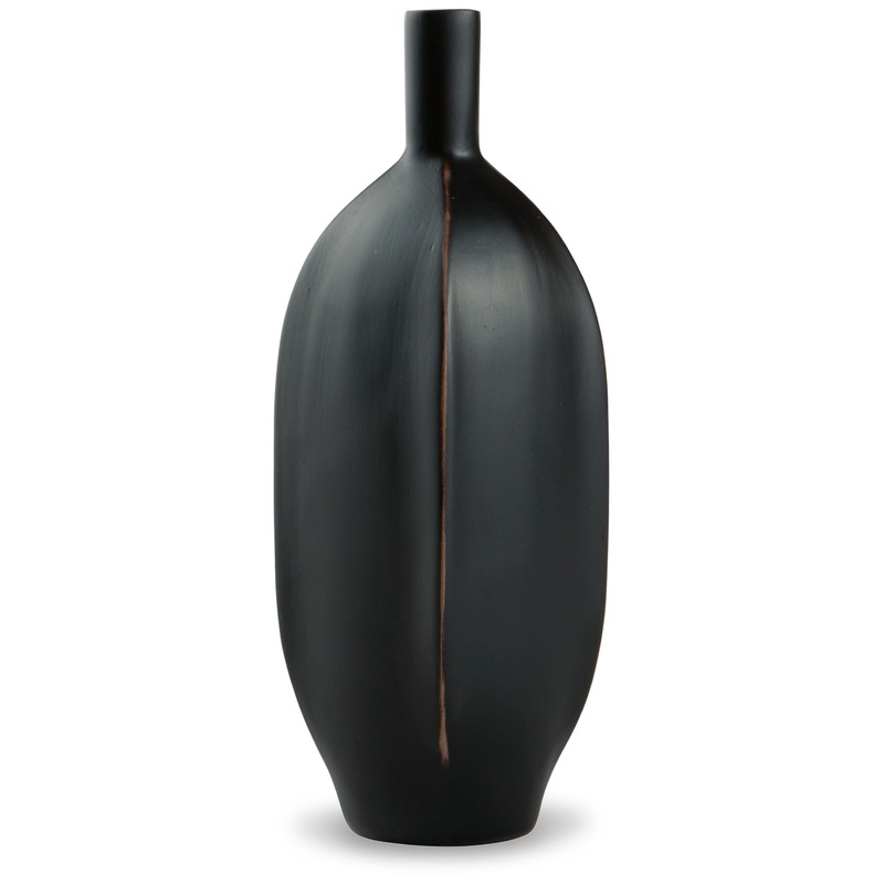 Impress with the simply sleek stylings of this vase. A black finish coats the piece, with a brown rub on the corners acting as a subtly eye-catching design element. What a chic addition to your bookcase, mantel or tabletop.Rhaveney - Black - Vase (Set of 3