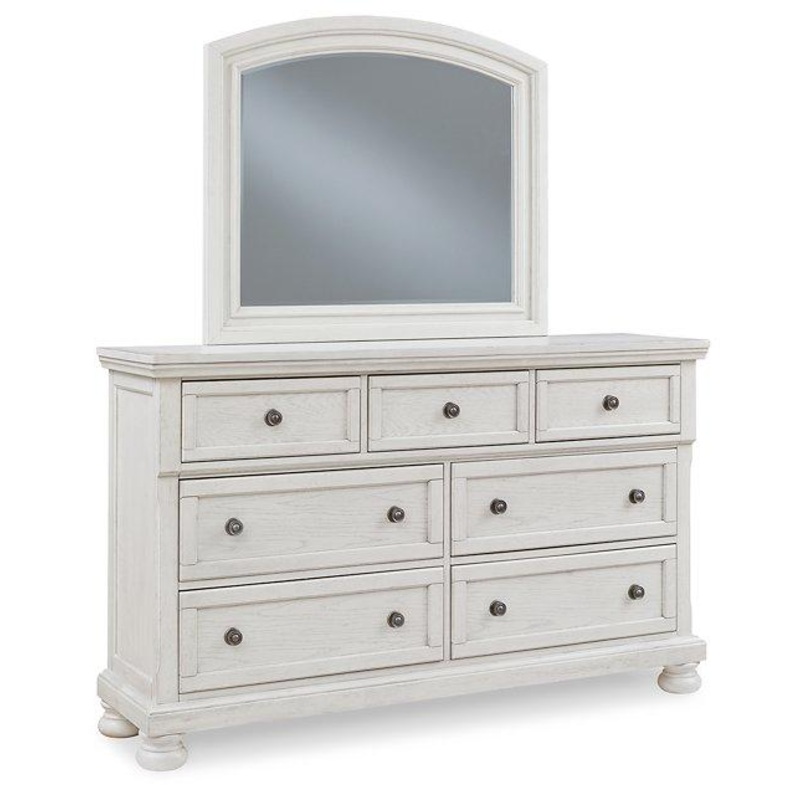 Elegant, timeless furnishings take your bedroom to the next level. Nothing does that better than this dresser with mirror. The antiqued white finish with a wonderful grain texture radiates sophistication, while the dark bronze-tone hardware adds an ornate