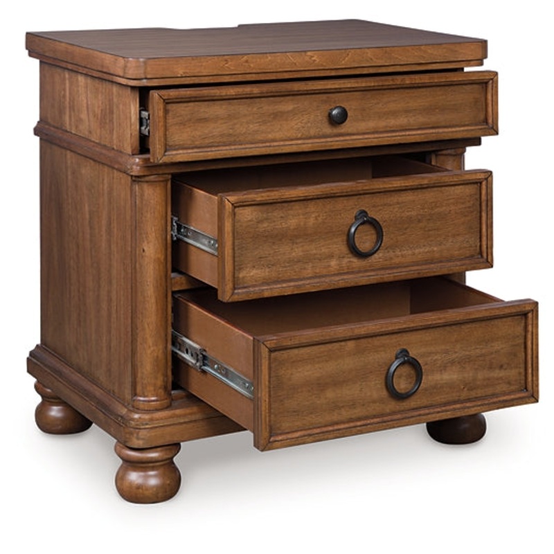 Taking a laid-back approach to casual traditional design, this artfully crafted nightstand combines classic elements with a clean modern approach. Its rubbed antiqued white finish exudes a comfy, timeless appeal that’s sure to carry you away to a dreamy time and place. The simple round metal knob and ring pulls on the nightstand’s spacious drawers make just the right statement, while an integrated power outlet and USB charging keep your devices powered up overnight.
