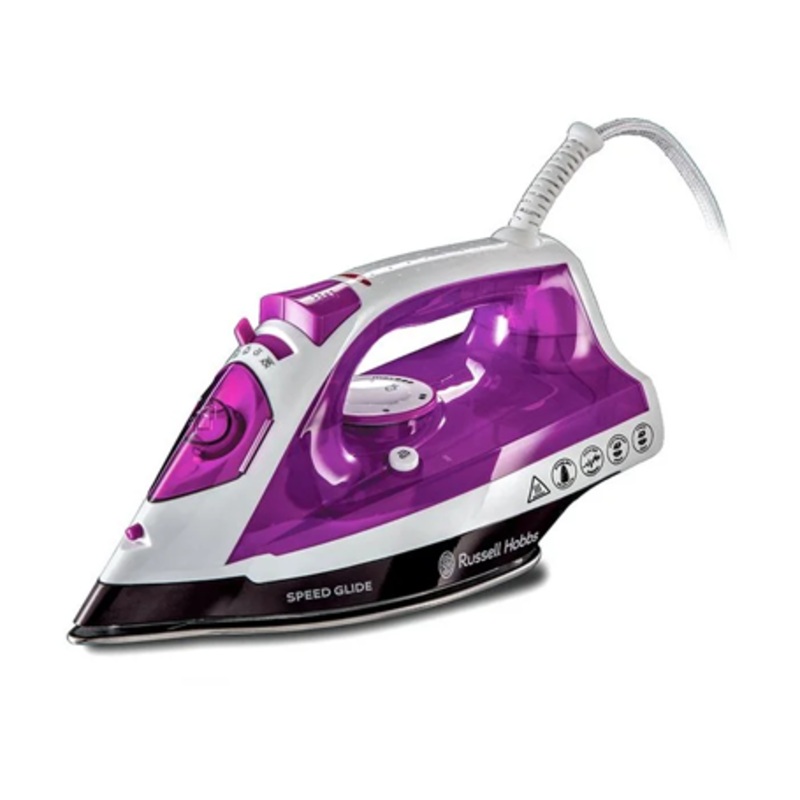 Russell Hobbs Speedglide Steam Iron, 2400 Watt, Purple | 23960 Get smooth, fast results with the Russell Hobbs Speedglide Steam Iron. The 40g/min of continuous steam penetrates deep into fabric and the non-stick stainless-steel soleplate glides easily so y