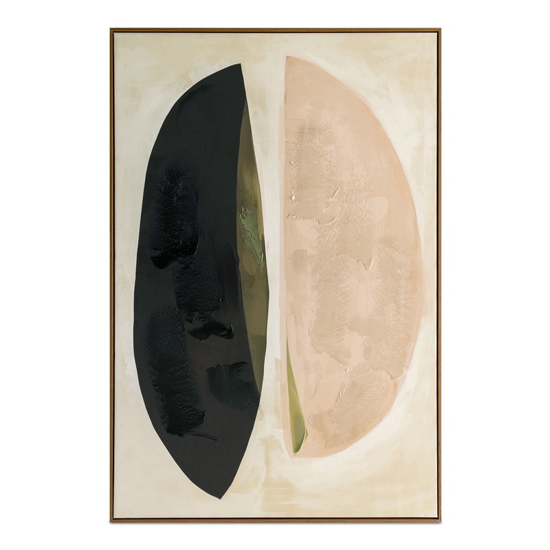 The Sage framed painting is an abstract canvas that captures the essence of wisdom exchanged. Muted warm tones, gentle greens, and soft pinks evoke serenity, while a grounding black accent adds depth. Enhanced with acrylic paint on canvas and embraced by a