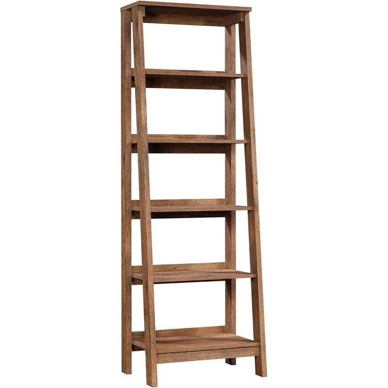 Sauder Trestle 5 Bookcase/Book Shelf, L: 23.54 x W: 16.61 x H: 71.14, Vintage Oak finish Simple, sleek and just what you need. Add versatile storage space to any room in your home with the beautiful style and design of the 5-Shelf bookcase from the trestle