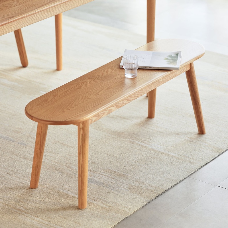 The Scandinavian Oak Wood Dining Bench ARC combines unique design with exceptional craftsmanship. Inspired by a baguette shape, its semi-round ends and warm wood tones add charm and character to any space. Crafted from premium North American FAS-grade oak, it features a spacious 300mm deep seat, reinforced base stretcher, and solid oak legs for superior stability.