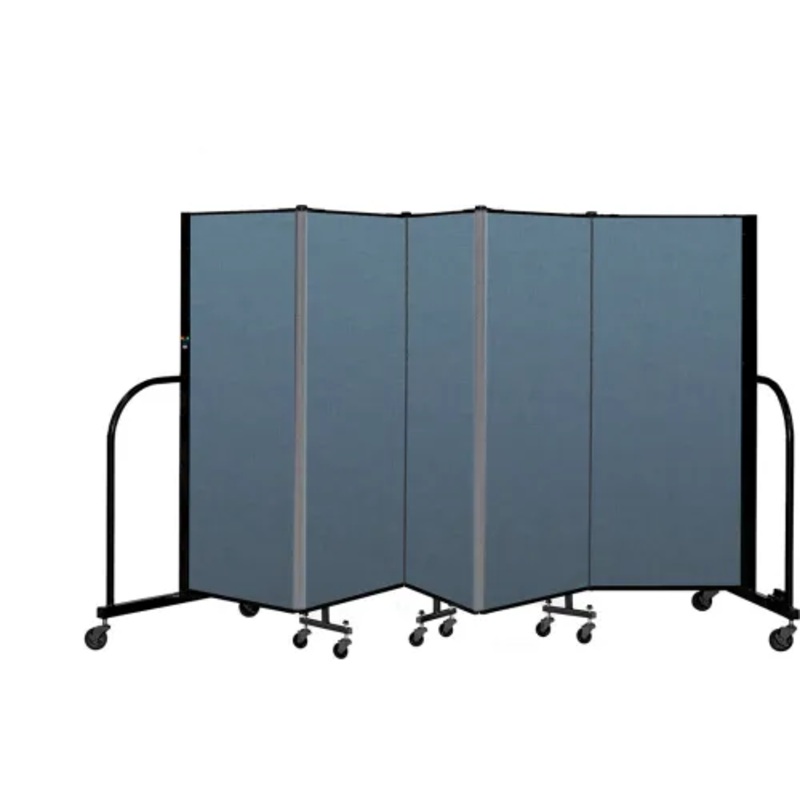 Screenflex Portable Room Dividers provide both a functional and visual appealing design element to any facility, office, school, hotel, medical center, hospitality establishment, or religious facility looking to use their space more efficiently. Each panel consists of an aluminum frame which surrounds a 1/2″ closed honeycomb core that is covered with two layers of fiberglass insulation for maximum sound absorption and tackability. Contrast that with other temporary walls that are rigid where sound bounces right off the partition. Additionally, Screenflex folding partition walls are designed with non-marking self-leveling caster wheels making them easy to arrange in any configuration desired to divide your space. Our wheels adapt to different levels of the floor, unlike other dividers that have hard plastic wheels that cause the divider to tilt during movement. Screenflex portable walls are made in the USA from 75% of the highest-quality recycled materials available to offer you years of dependable use. Scotchgard fabric protection included. No assembly required. Limited Lifetime Warranty.