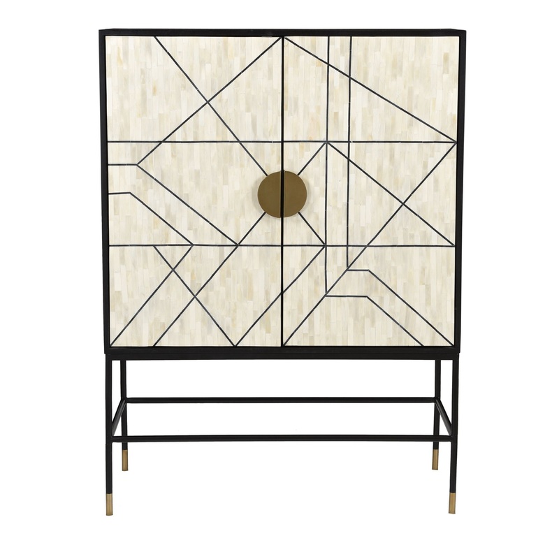 An aesthete's delight. The Shaws cabinet is a luxurious affair of solid mango wood and ornate bone veneer. Two large doors open up to an abundance of shelving space. Brass details finish off this imposing piece.Product FeaturesSolid mango wood construction