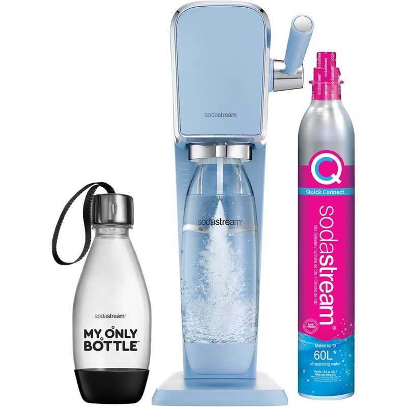 SodaStream Art Sparkling Water Maker (Blue) with CO2 and Two Carbonating Bottles The SodaStream Art Sparkling Water Maker celebrates the art of making your own fresh sparkling beverages at home. With a push of the lever, turn flat water into fresh sparklin