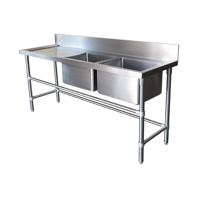 Commercial double sink with tray Stainless Steel Two Compartment Commercial Sink Wash, prep, or clean with ease when you use this two compartment commercial sink with one 18 drainboard from Regency Tables and Sinks. Made of high-quality gauge, type stainle