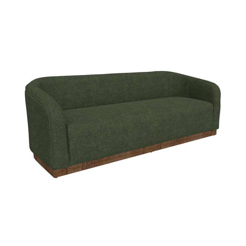 Wooden Frame & Base, Sofa. The Suomi Collection, distinguished by its flowing form, embodies the Zen-inspired Japandi style. This sofa minimalist design is harmoniously complemented by its wooden base crafted from pine wood, with its wraparound back seamlessly merging into rounded arms, creating a cradle for an exceptionally thick and comfortable cushioned seat