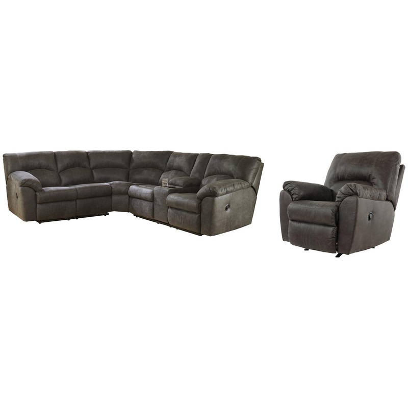 With plush cushions and wraparound pillow top arms, this 2-piece sectional and recliner set takes comfort to a whole new level. Faux vintage leather requires minimal care, making this relaxation station ideal in homes with children and pets. Reclining feature engages with the pull of a tab, putting pleasure at your fingertips.