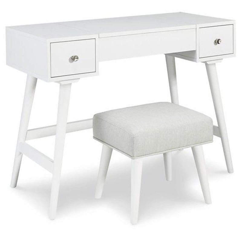 Whether in a teen's room, master bedroom or dressing area, the mid-century inspired design of this vanity set in white is packed with possibilities. The flip-top design makes it doubly handy as a vanity or writing table; flip it up for access to hidden sto
