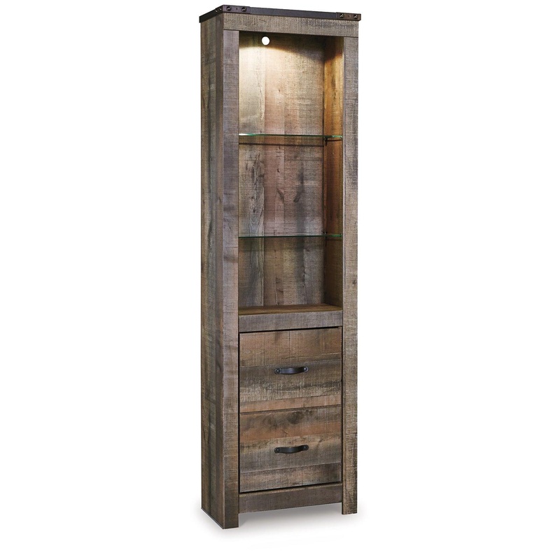 Entertain a rugged yet refined sense of style with this entertainment center pier. Rustic finish and plank-style details pay homage to reclaimed barn wood, while metal banding with nailhead accents infuses a touch of industrial cool. Ultra clean lines ensu