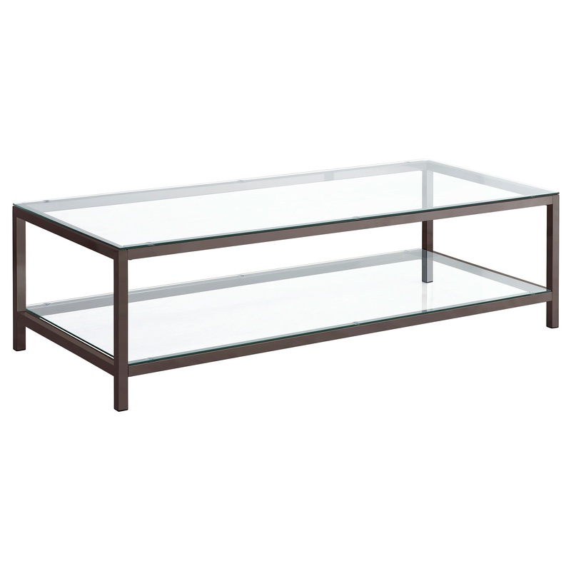 Sleek and contemporary, this coffee table pairs a black nickel electroplated frame with clear tempered glass surfaces. Its spacious tabletop and matching lower shelf provide ample room for storage or display, ideal for modern living spaces. The minimalist