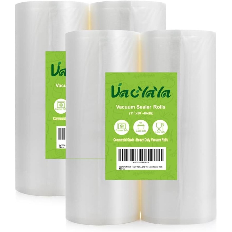 VacYaYa 4 Pack 11X50 Rolls (Total 200 feet) Vacuum Sealer Bags Rolls with BPA Free,Heavy Duty,Great for Sous Vide and Vac Seal storage Rolls
