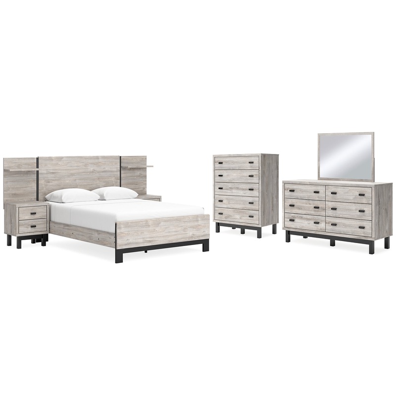 | Details | B1036B5: Includes queen panel headboard, footboard, rails, headboard extensions and 2 nightstands, Made with engineered wood (MDF/particleboard/plywood) and decorative laminate for the right balance of affordability and durability, Light gray finish over a replicated oak grain with authentic touch; base has matte black finish with subtle replicated wood grain, Decorative laminate replicates natural or man-made material surfaces with consistent color, pattern and texture, Handles with matte black finish, Headboard extensions mount to nightstands; each includes shelf with warm LED lighting underneath, 2 smooth-gliding drawers; drawer interiors are lined with a faux linen laminate for a clean, finished look, Each nightstand has Qi wireless charging and 1 USB charging port, Foundation/box spring required, sold separately; mattress available, sold separately, Power cord included; UL Listed, Assembly required, B1036B1: Includes dresser and mirror, Made with engineered wood (MDF/particleboard/plywood) and decorative laminate for the right balance of affordability and durability, Light gray finish over a replicated oak grain with authentic touch; base has matte black finish with subtle replicated wood grain, Decorative laminate replicates natural or man-made material surfaces with consistent color, pattern and texture, Handles with matte black finish, 6 smooth-gliding drawers, Drawer interiors are lined with a faux linen laminate for a clean, finished look, Mirror attaches to back of dresser; can also be hung horizontally or vertically, Safety is a top priority, clothing storage units are designed to meet the most current standard for stability, ASTM F 2057 (ASTM International), Drawers extend out to accommodate maximum access to drawer interior while maintaining safety, Assembly required, B1036-345: Made with engineered wood (MDF/particleboard/plywood) and decorative laminate for the right balance of affordability and durability, Light gray finish over a replicated oak grain with authentic touch; base has matte black finish with subtle replicated wood grain, Decorative laminate replicates natural or man-made material surfaces with consistent color, pattern and texture, Base has matte black finish with subtle replicated wood grain, Handles with matte black finish, 5 smooth-gliding drawers, Drawer interiors are lined with a faux linen laminate for a clean, finished look, Safety is a top priority, clothing storage units are designed to meet the most current standard for stability, ASTM F 2057 (ASTM International), Drawers extend out to accommodate maximum access to drawer interior while maintaining safety, Assembly required, |