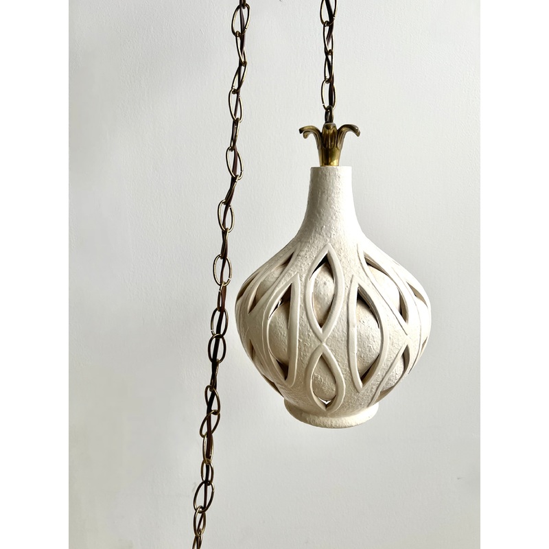 Condition: This vintage swag lamp is an 8.5 and in good condition with wear from use and age. There are small scuffs and some discoloration but overall it is in good condition. Please see the photos!