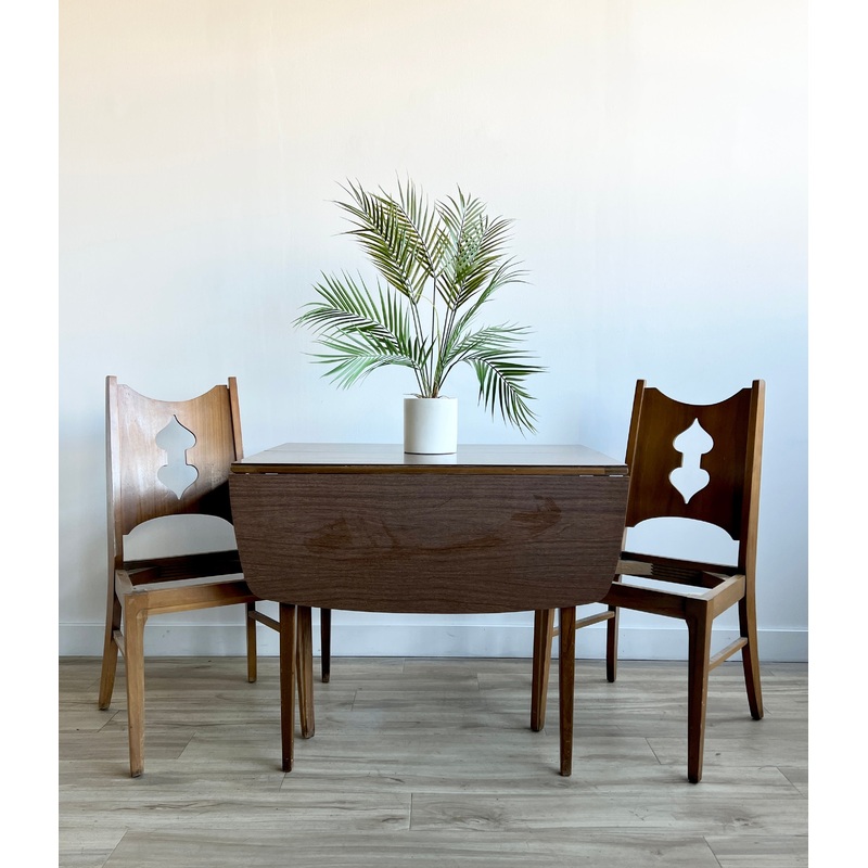 Condition: This vintage dining set is an 8.5 and in good condition with light wear from use and age. There are a couple small scuffs and some discoloration but overall it is in good condition. Please see the photos!