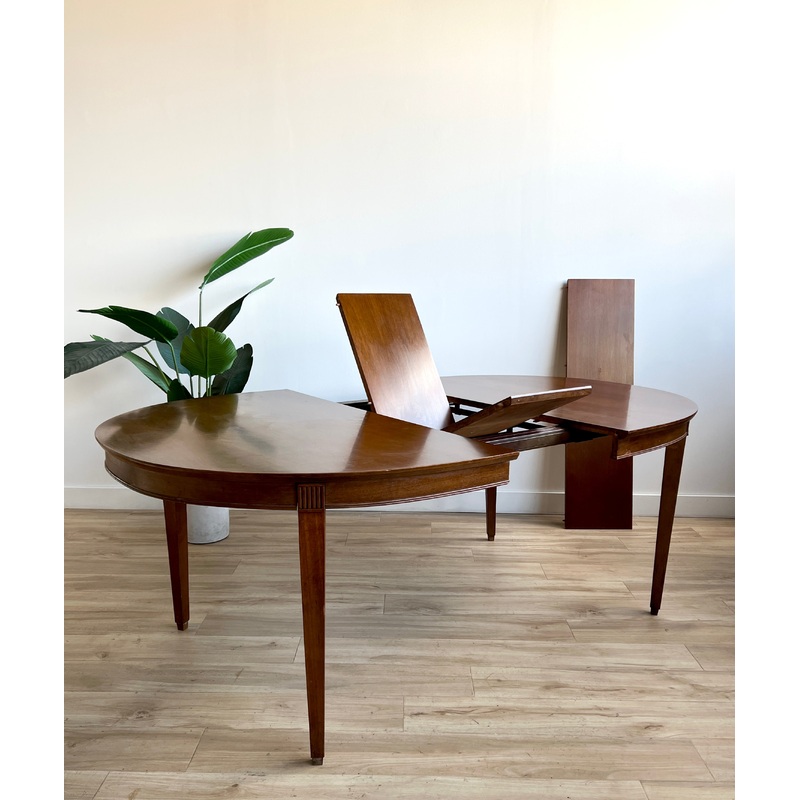 Condition: This dining table is an 8.5 and in good condition with light wear from use and age. There are a couple small scuffs and some discoloration but overall it is in good condition. Please see the photos!