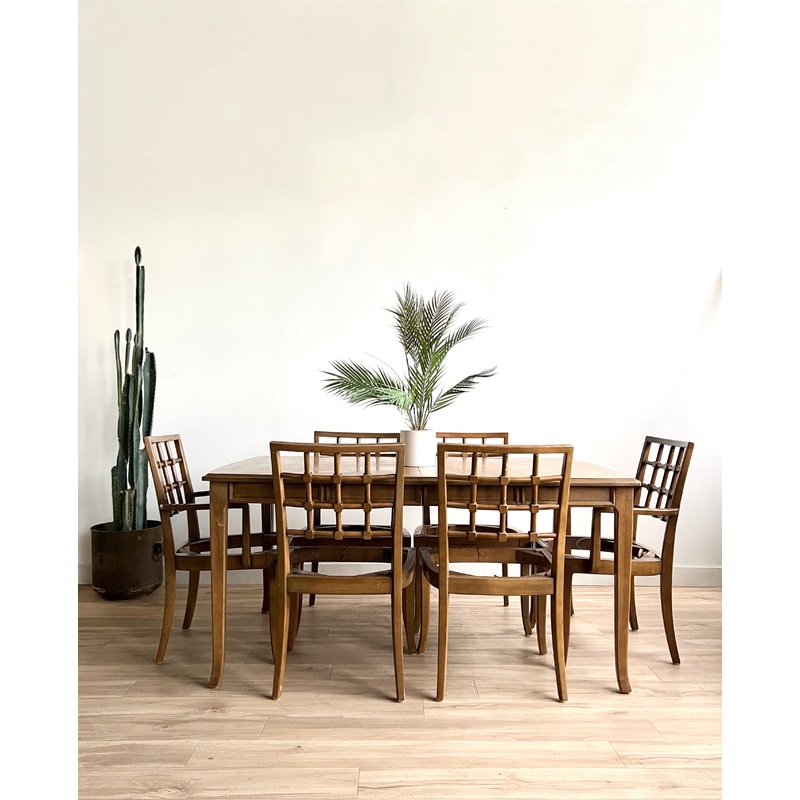 Condition: This dining set is an 8 and in good condition with wear from use and age. There are small scuffs and some discoloration but overall it is in good condition. Please see the photos!