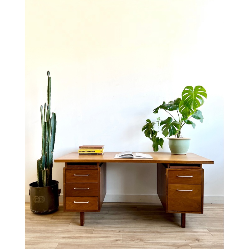 Measurements: 66 wide x 30 deep x 29 tallCondition: This vintage desk is a 7.5 and in good condition with wear from use and age. There are some scuffs and discoloration but overall it is in good condition. Please see the photos!Local customers: We offer fr