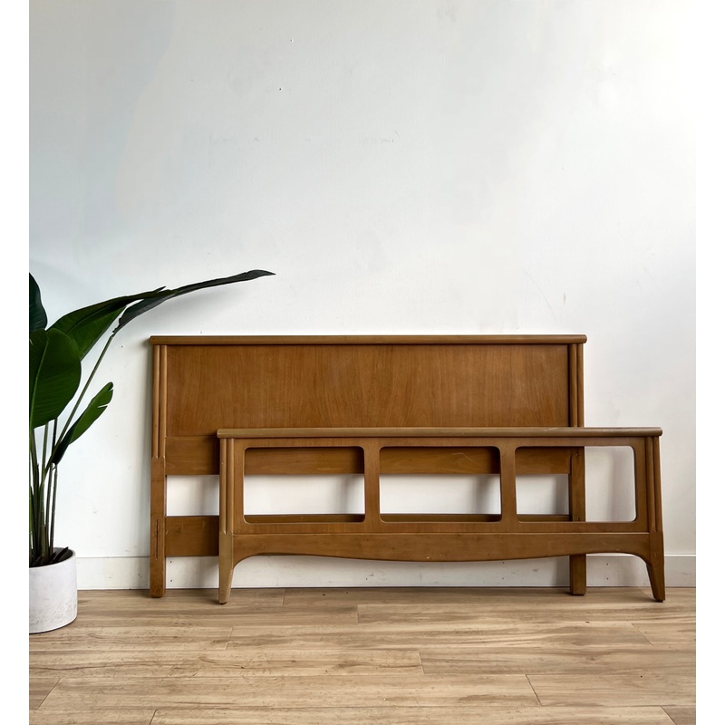 Condition: This headboard / bed frame is an 8 and in good condition with wear from use and age. There are small scuffs and some discoloration but overall it is in good condition. It is a full size frame and can be modified to fit a queen. Please see the photos!