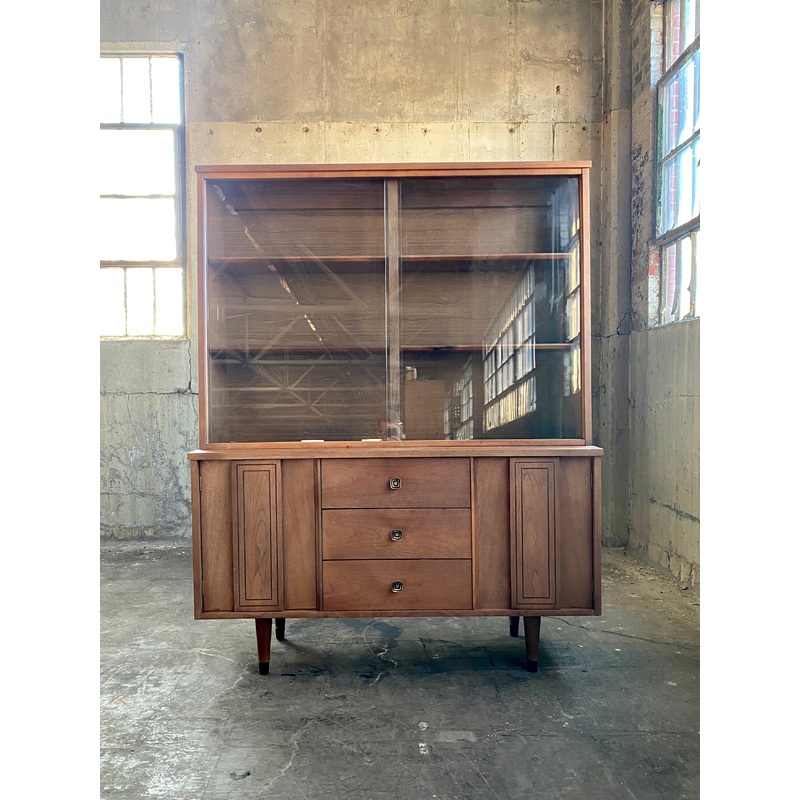 Measurements: 50 wide x 17 deep x 64 tallCondition: This vintage hutch is a 7.5 and in good condition with light wear from use and age. There are a couple small scuffs and some discoloration but overall it is in good condition. Please see the photos!Local