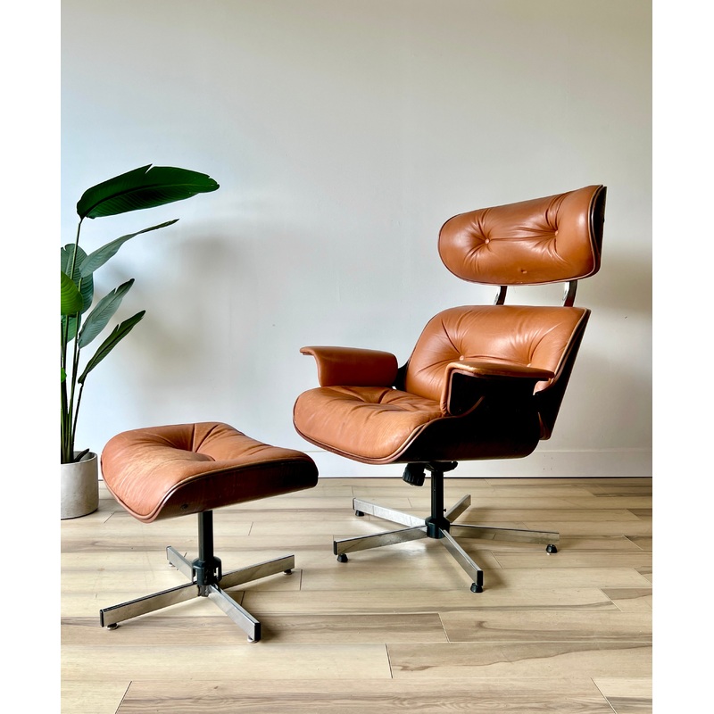 Condition: This vintage lounge chair is an 8 and in good condition with light wear from use and age. The tilt mechanism has been replaced. There are a couple small scuffs and some discoloration but overall it is in good condition. Please see the photos!