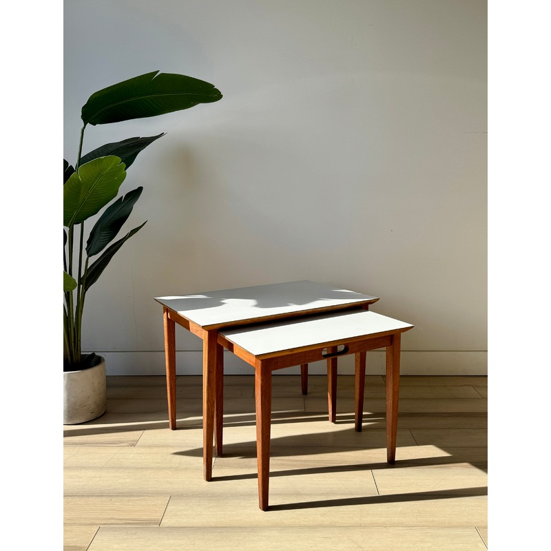 Condition: These vintage tables are a 7.5 and in good condition with light wear from use and age. There are a couple small scuffs and some discoloration but overall it is in good condition. Please see the photos!