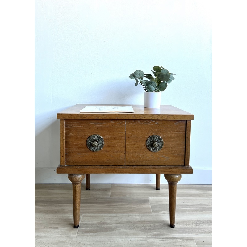 Measurements: 20 wide 16 deep x 25 tallCondition: This nightstand / end table is an 8.5 and in good condition with wear from use and age. There are small scuffs and some discoloration but overall it is in good condition. Please see the photos!Local custome