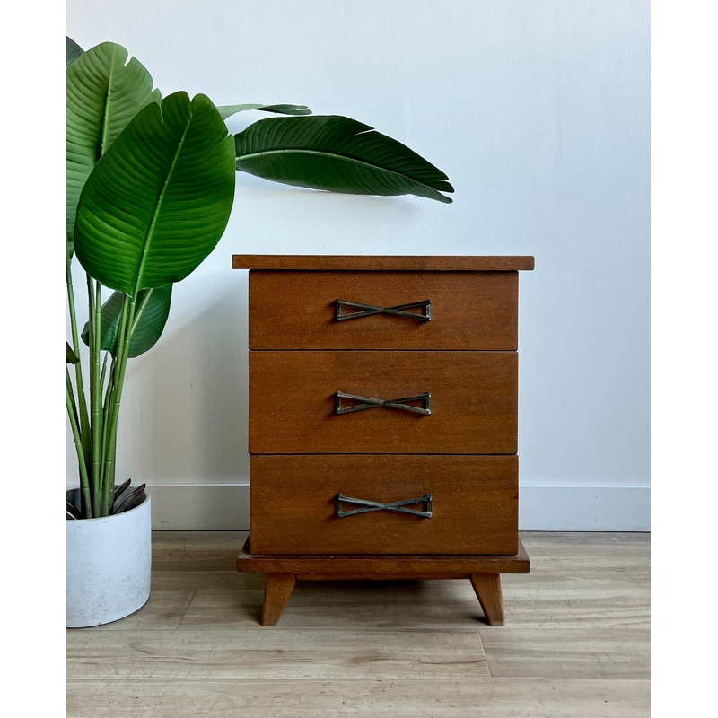 Condition: This vintage nightstand is an 8.5 and in good condition with light wear from use and age. There are a couple small scuffs and some discoloration but overall it is in good condition. Please see the photos!