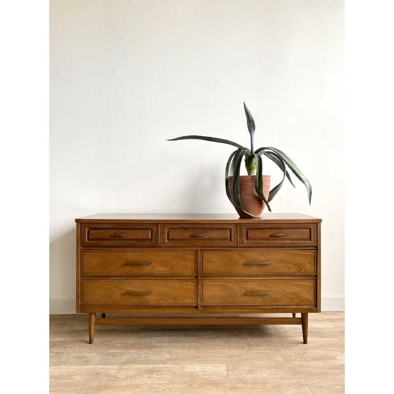Measurements: 56 wide x 17.5 deep x 30.5 tallCondition: This vintage dresser is an 8 and in good condition with light wear from use and age. There are a couple small scuffs and some discoloration but overall it is in good condition. Please see the photos!L