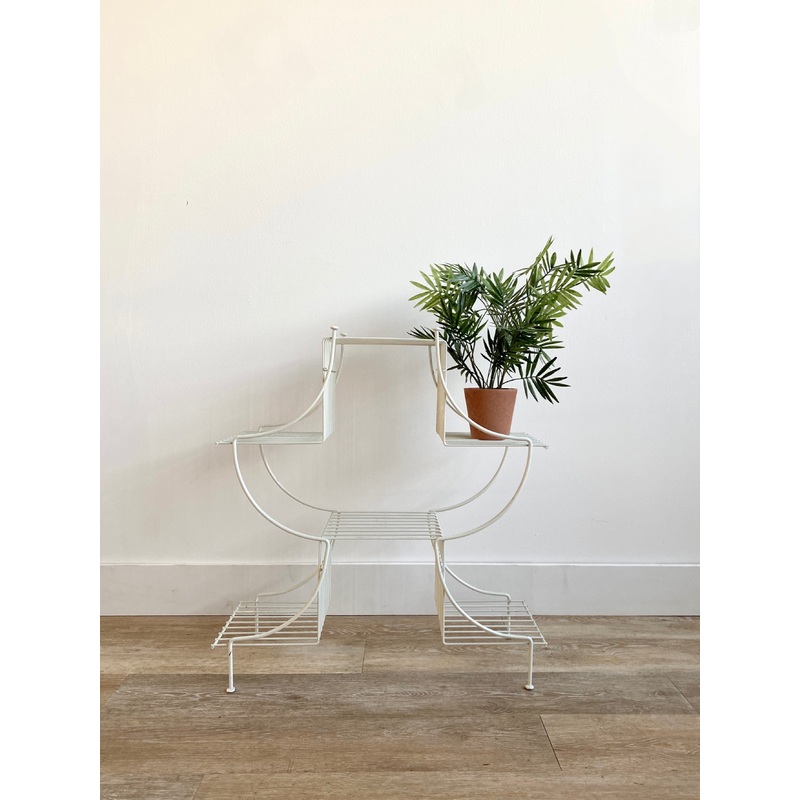 Measurements: 22 wide x 9 deep x 24 tallCondition: This vintage plant stand is an 8.5 and in good condition with light wear from use and age. There are a couple small scuffs and some discoloration but overall it is in good condition. Please see the photos!