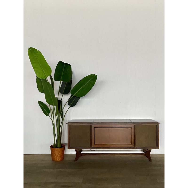 Measurements: 60 wide x 18 deep x 25 tall.Condition: This console stereo has a wood top. It is an 8 and in very good condition with light wear from use and age. There are a couple small scuffs but overall it is in very good condition! Please see the photos