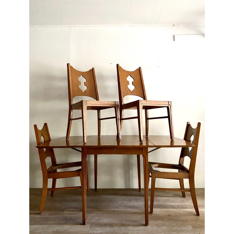 Condition: This dining set is an 8.5 and in good condition with very minimal wear use and age. There are a couple small scuffs and small chips but overall it is in very good condition! Please see the photos!