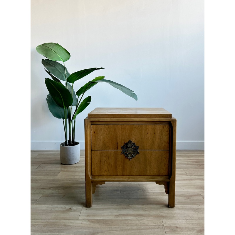 Measurements: 24 wide x 16 deep x 26 tallCondition: This vintage nightstand is an 8.5 and in good condition with light wear from use and age. There are a couple small scuffs and some discoloration but overall it is in good condition. Please see the photos!