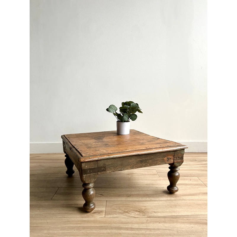 Measurements: 19 wide x 19 deep x 7 tallCondition: This vintage tea table is a rustic 7 and in good condition with wear from use and age. There are small scuffs and some discoloration but overall it is in good condition. Please see the photos!Local custome