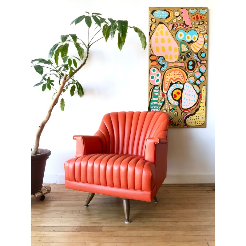 Chair measures 28″ wide x 24″ deep x 29 tallCondition: This mid-century chair is in good condition with some wear from use and age.Please call 402 474 5407 with any questions or to request additional photos.Lincoln customers: We offer delivery to Lincoln, NE for a $45 fee.Omaha customers: We also deliver to Omaha, NE for $65! If you are in Omaha, please call us at 402 474 5407 to arrange delivery.Out of state customers: We can ship smaller non-breakables to you. The price at check-out does not include shipping. Please email us at [email protected] if you’d like to arrange shipping. We ship via USPS priority mail and charge only actual shipping costs. For furniture and larger items, we can hold items for up to a week for pick-up. We charge a $25 storage fee for items held longer than week and cap storage at three weeks.If you have any questions, please email us at [email protected] or call us at 402-474-5407