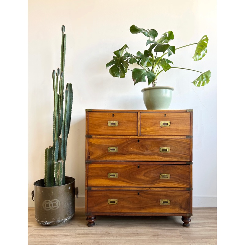 Condition: This vintage original campaign chest is an 8 and in good condition with wear from use and age. There are small scuffs and some discoloration but overall it is in good condition. Please see the photos!