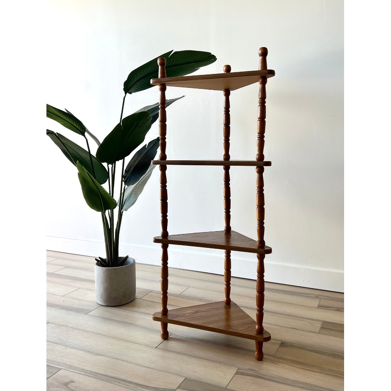 Measurements: 30 wide x 14 deep x 46 tallCondition: This vintage plant stand is an 8.5 and in good condition with light wear from use and age. There are a couple small scuffs and some discoloration but overall it is in good condition. Please see the photos