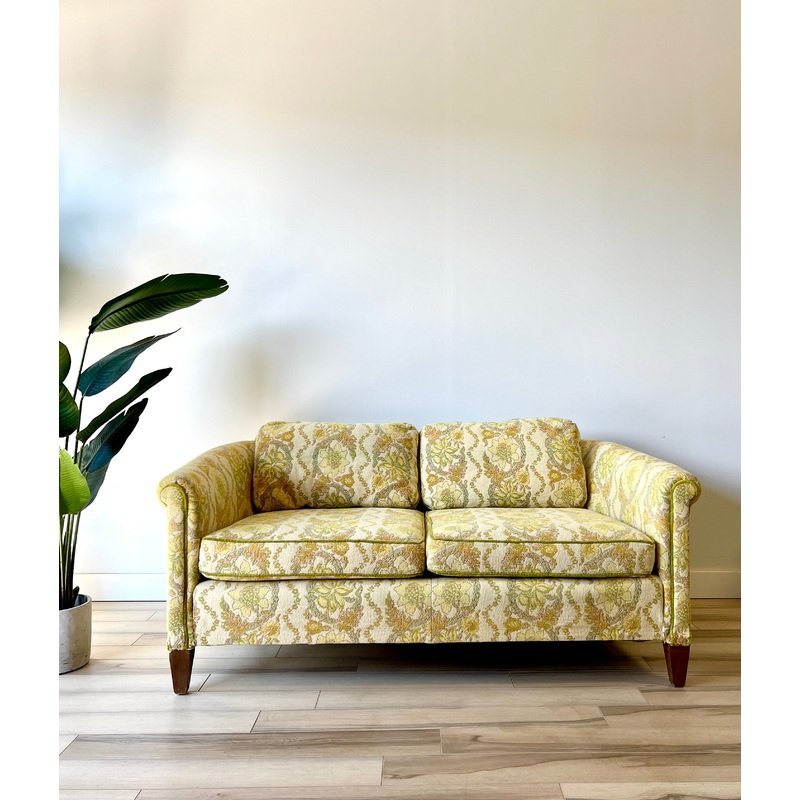 Condition: This vintage sofa is an 8.5 and in good condition with light wear from use and age. There are a couple small scuffs and some discoloration but overall it is in good condition. Please see the photos!