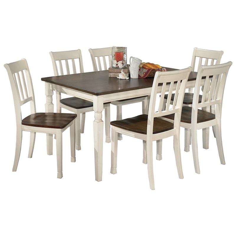Incorporate cottage-cool warmth in your dining space with this 7-piece dining room set. The spacious rectangular dining table and six rake back chairs with two-tone finish serve up twice the charm and character.SpecificationsDetailsD583-25: Assembly requir