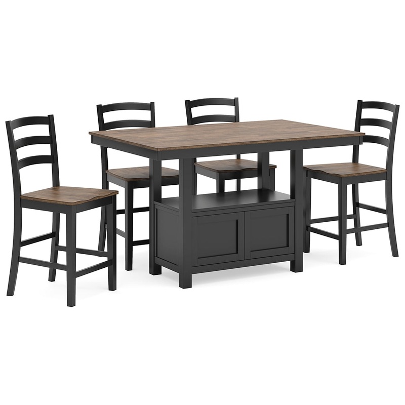 Raise the bar on modern farmhouse style with this dining package. It adds a fresh element to your space, whether your style is vintage, country or eclectic. A handsome two-tone finish accentuates its casual good looks. This richly crafted set serves up cha