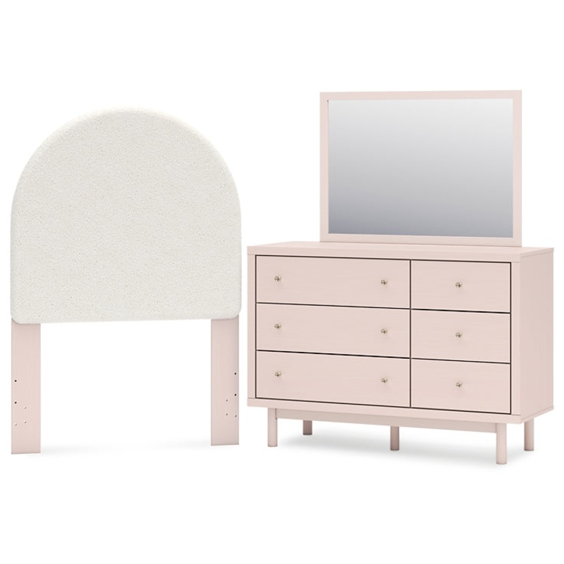 | Details | B1323-53: Made with durable engineered wood frame covered in a creamy white boucle, Polyester upholstery, ” bolts (not included) are needed to attach headboard to your existing bed frame, Minor assembly required, B1323B1: Includes dresser and mirror, Made with engineered wood (MDF/particleboard/plywood) and decorative laminate for the right balance of affordability and durability, Subtle blush finish over replicated pecan wood grain, Decorative laminate replicates natural or man-made material surfaces with consistent color, pattern and texture, Champagne colored knobs, 6 smooth-gliding drawers , Drawer interiors are lined with a faux linen laminate for a clean, finished look, Mirror can be attached to back of dresser or wall mounted horizontally or vertically, Safety is a top priority, clothing storage units are designed to meet the most current standard for stability, ASTM F 2057 (ASTM International) , Drawers extend out to accommodate maximum access to drawer interior while maintaining safety, Minor assembly required, |