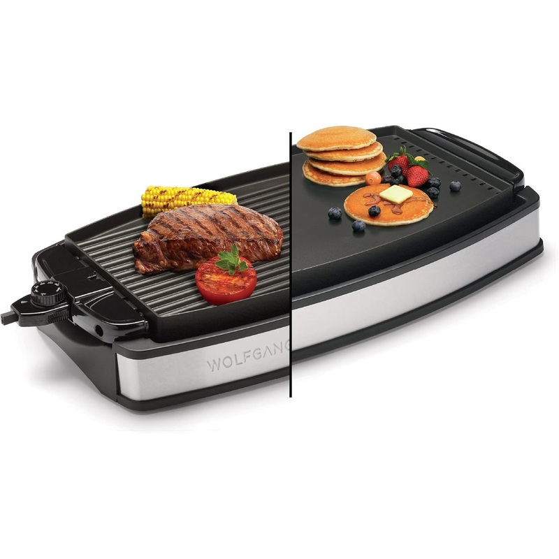 Wolfgang Puck XL Reversible Grill Griddle, Oversized Removable Cooking Plate, Nonstick Coating, Dishwasher Safe, Heats Up to 400F, Stay Cool Handles