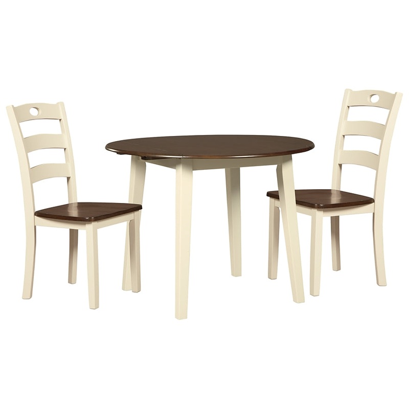 Turn your eat-in kitchen or dining space into a cottage-chic retreat with this round, drop leaf dining table set. Two-tone finish serves up a double helping of charm. Chairs' pierced ladderback design is equally sweet and sophisticated.SpecificationsDetail