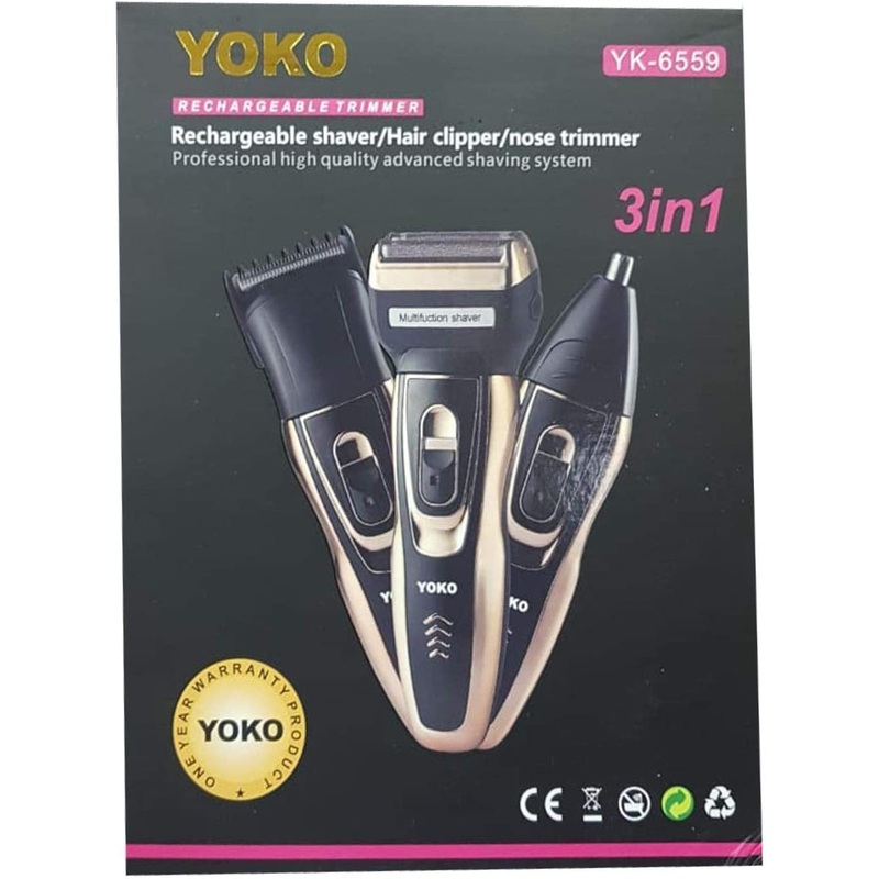 Product description Model Number : YK-6559 Number of Speed Settings : 2 Brand : YOKO Targeted Group : Unisex Number of Heads : 2 Operating Function : Wet & Dry Type : Clipper & Trimmer Power Source : Electric & Battery Exclusive on Dombelo!