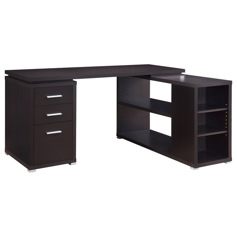 L-shape office desk with articulating return in cappuccino finish